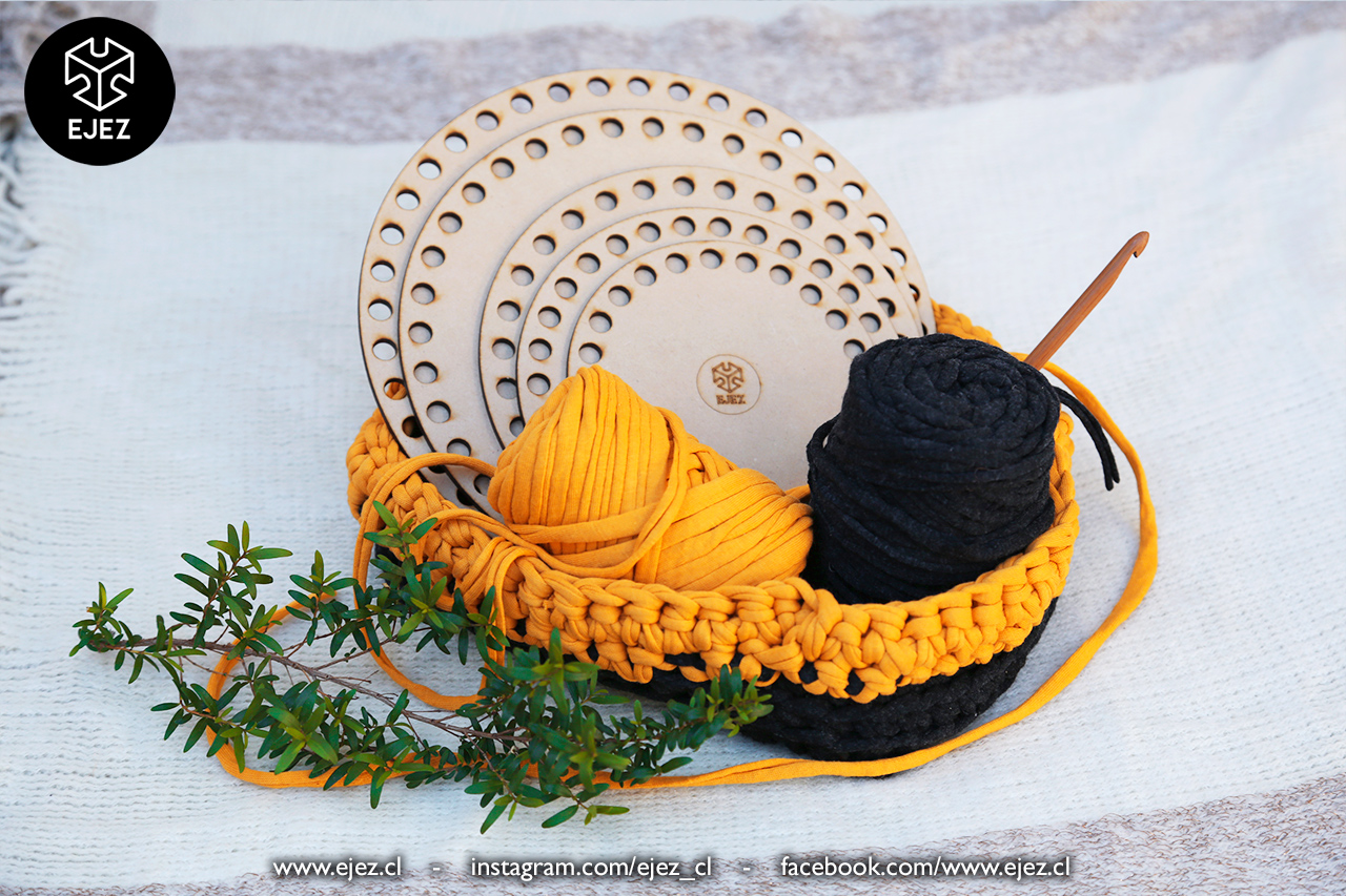 Practicas bases cortadas con láser en MDF de 3mm de grosor, para armar diversos tipos de cestas de trapillo.