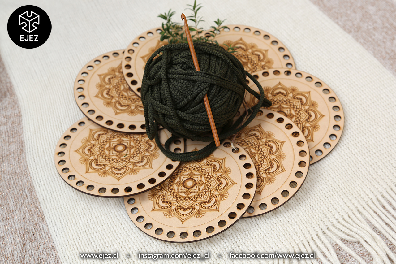 Prácticas bases de MDF de 3mm con tapa, para armar diversos tipos de cestas de trapillo cortadas con láser.
