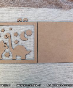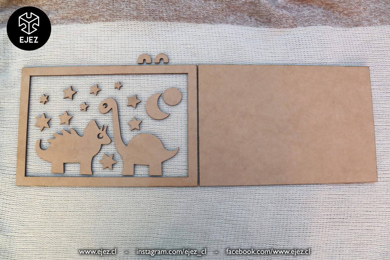 Hermoso proyecto para hacer cuadro decorativo, con temática infantil de dinosaurios, contiene 2 dinosaurios, estrellas y luna, la base y marco.
