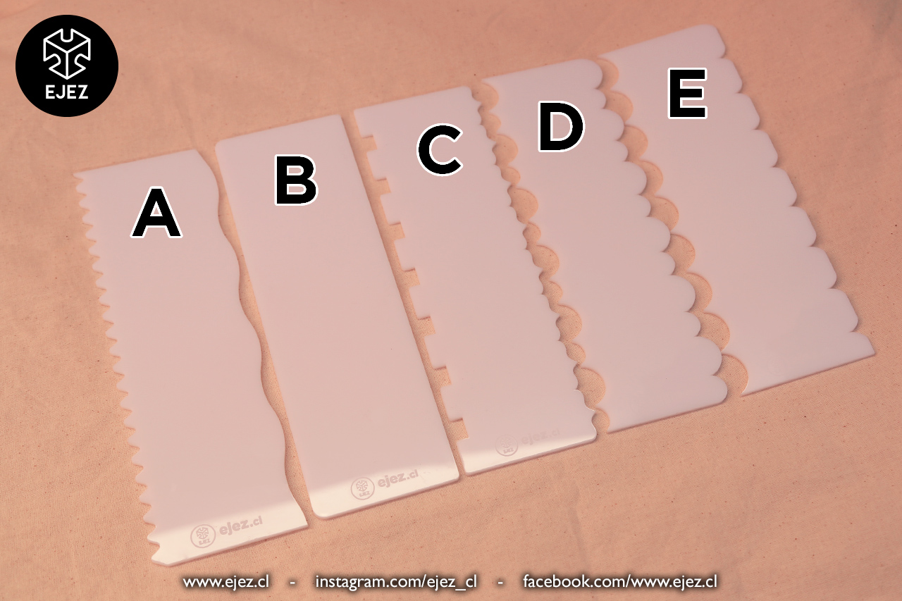 | Forma | Diseño A, Diseño B, Diseño C, Diseño D, Diseño E, Pack con los 5 diseños |